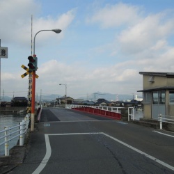 向島入口にある錦橋(にしきばし)は可動橋です。 中央を中心にして水平に回転して開き、船が通れる状態になります。 橋が開く時は警報機がなって遮断機が下りて道路が通れなくなります。 橋の手前 向島側から撮影 踏切と同じで警報機と遮断機があります。右は機械舎です ...