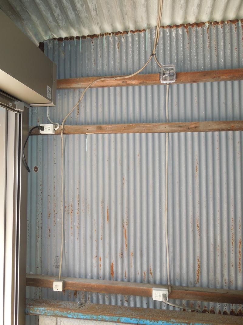 シャッター横に人感センサーライト用のコンセントを追加しました。