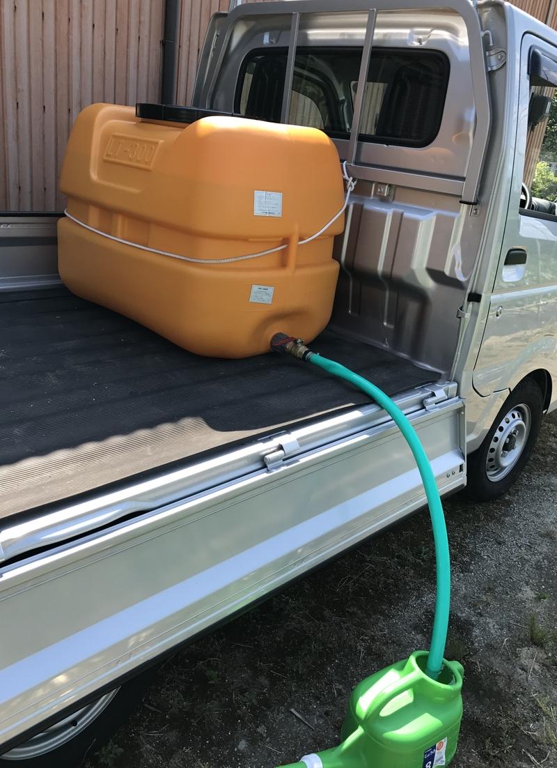 軽トラの最大積載量は350kgなんですね。300Lなら最大積載量以内です。
