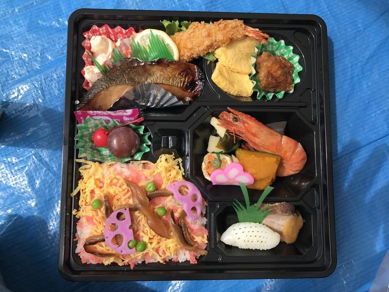 お昼に出た自治会の弁当は豪華でした。