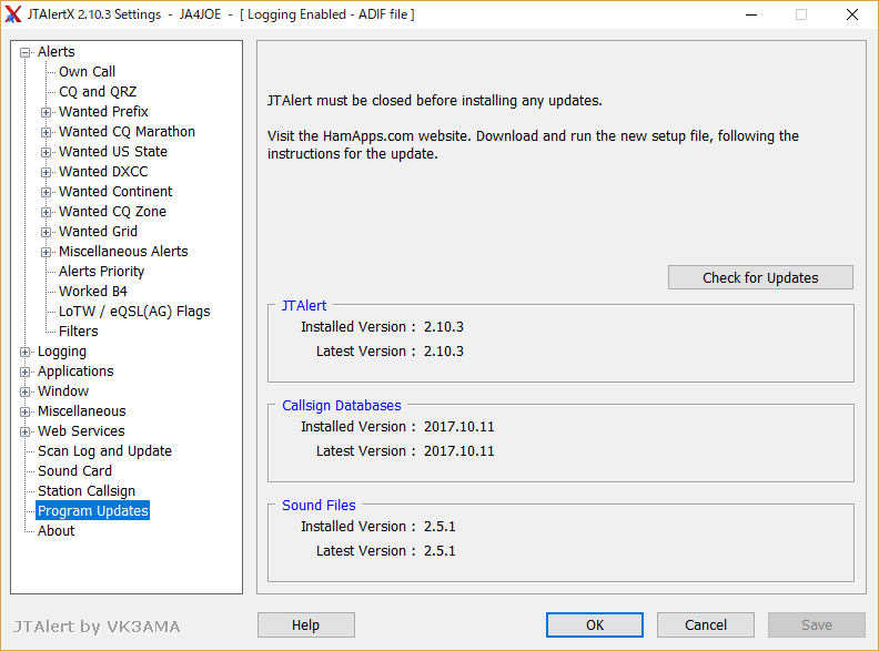 ついでにJTAlertもv2.10.3になっていたのでバージョンアップしました。