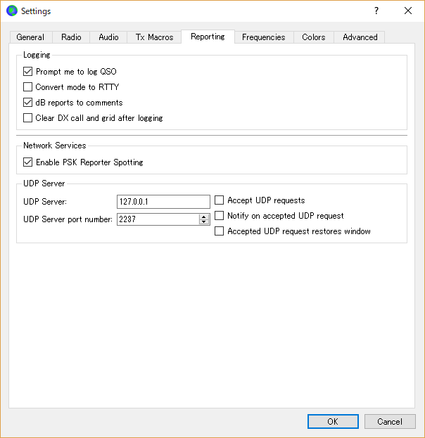 他にJTAlertXが2つのWSJT-Xとは通信できないので、こちらのWSJT-XのUDP Serverを停止しておきます。