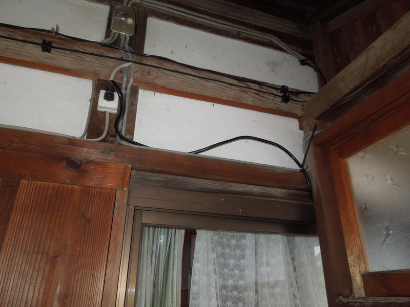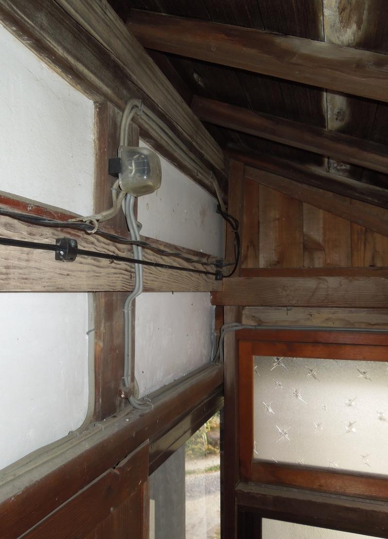 設置は土間入り口に蛍光灯が付いているので外して、代わりに設置しようかとも思ったのですが、蛍光灯もあれば便利なので残して別に電源を引くことにしました。