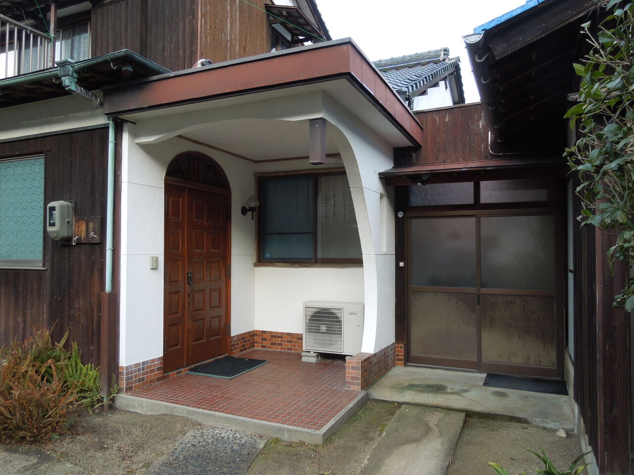 玄関と門方向の両方を照らすようにライト角度を調整しました。