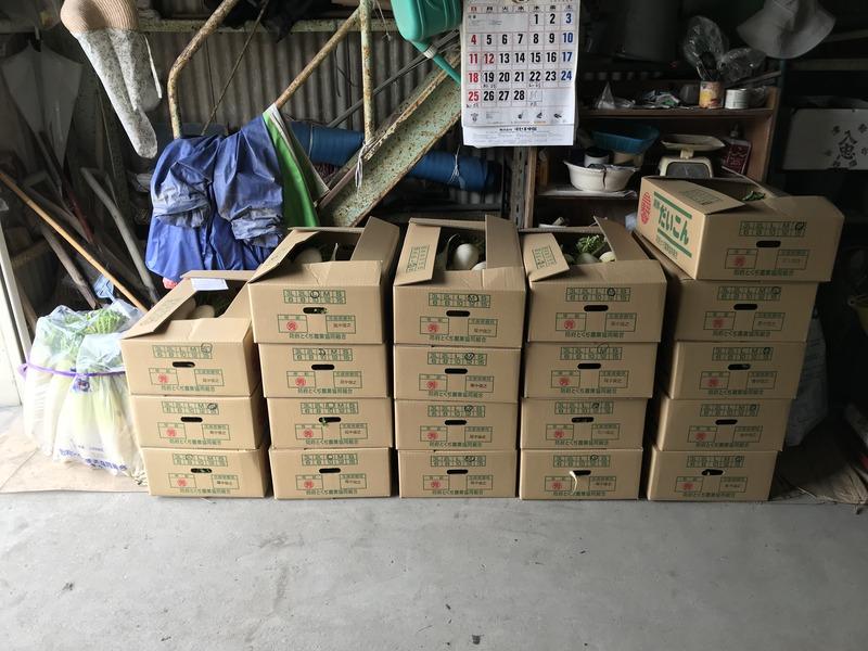 あと、途中で直売所だけでは無くなりそうもないので、1回、沢あんを作って直売所に出してる方に約180本をまとめて引き取ってもらいました。漬物用なので多少傷があったり小さめでも大丈夫との事で、ヒゲ取りも不要で良かったです。
