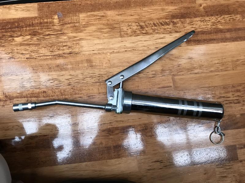他にギヤにグリースを補充しました。説明書では20時間毎に補充するように書いてあり、今回は2時間くらいしか使ってないので必要ないと思いますが、昨年購入したグリースガンがあったので、ついでにやっておきました。(笑)