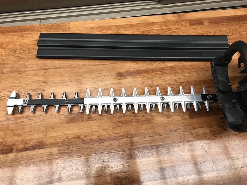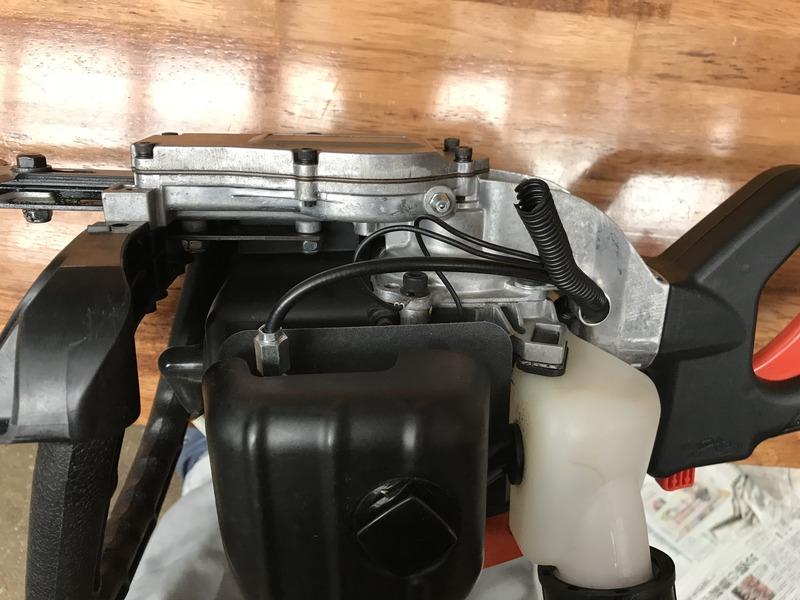 先の記事「畑の生垣剪定(その2)」で使ったエンジンヘッジトリマーをメンテナンスして倉庫に保管しました。