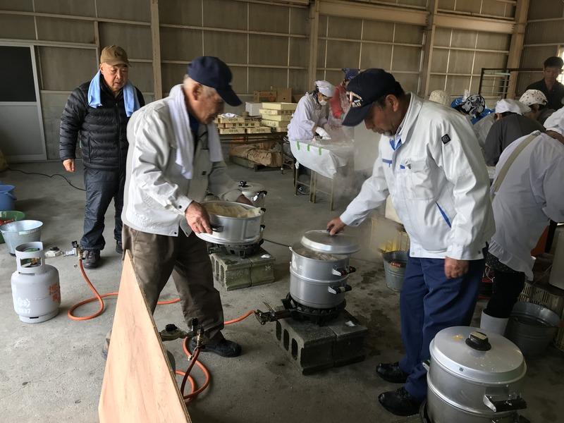 今回はJAの倉庫を借りて餅つきが行われました。昨年までは立岩稲荷でやってたそうですが、遠くて行き来が大変なので、今年はJA倉庫でやることになったそうです。