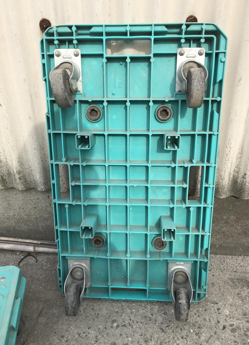 2月の記事「ダイコンを出荷しました。」でダイコンを出荷した話を書きましたが、ダイコン洗浄機で洗った大根を収穫コンテナに入れて倉庫に運ぶのに使うものですが、車輪を1個壊してしまいました。とりあえず新しい平台車を購入したので作業に支障は無かったのですが、捨てるのはもったいないので修理しました。
