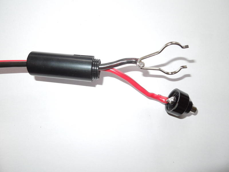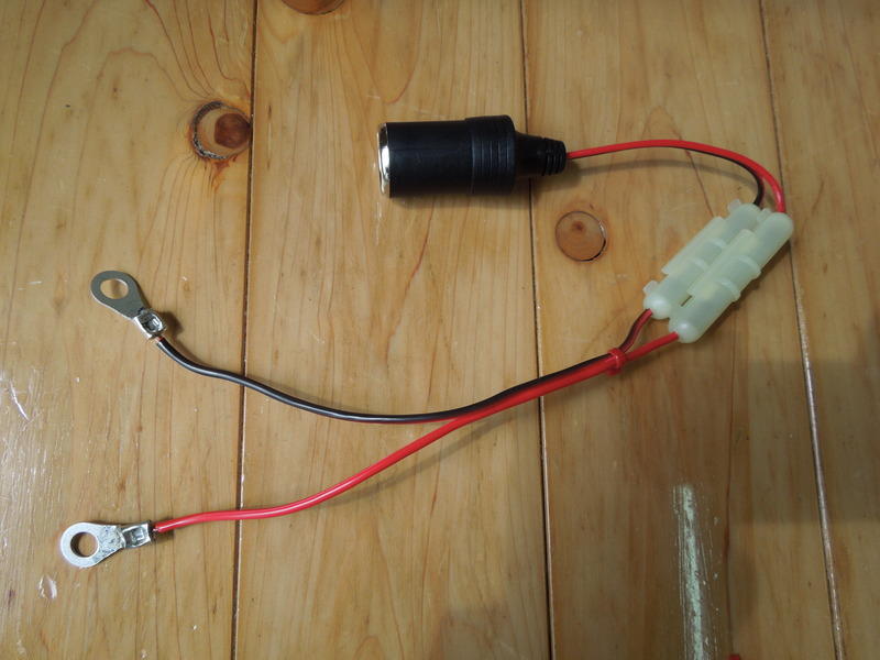 途中にフューズを入れたコード付きシガーソケットを作りました。端子は念のため圧着後に半田付けしてあります。