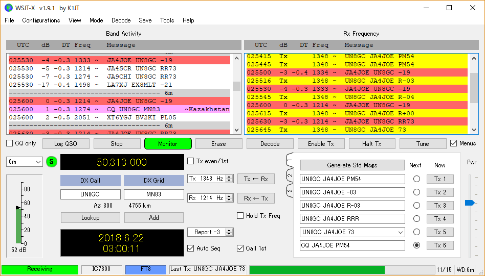 WSJT-X FT8 DXpedition Mode? 2018年06月22日 さっき、50MHzのFT8でCQを出してたカザフスタンの局を呼んだら同時に3局と交信してました。 これがWSJT-XのFT8 DXpedition Modeらしいです。呼ぶ側がHoundに設定してなくても良いんですね。 最初にCQを出していた周波数から上に100Hz程度ずらして呼んだので問題なく交信できたようです。 WSJT-X FT8 DXpedition Mode 初体験でした。たぶん。(笑) < 前の記事次の記事 > コメント (お願い)質問はメールではなく、コメントでお願いします。「名前」欄にお名前をお願いします。アマチュア無線関係の質問はコールサインをお願いします。 コメントフォーム 名前 コメント 記事の評価 リセット リセット 顔 星 情報を記憶 コメントを投稿する