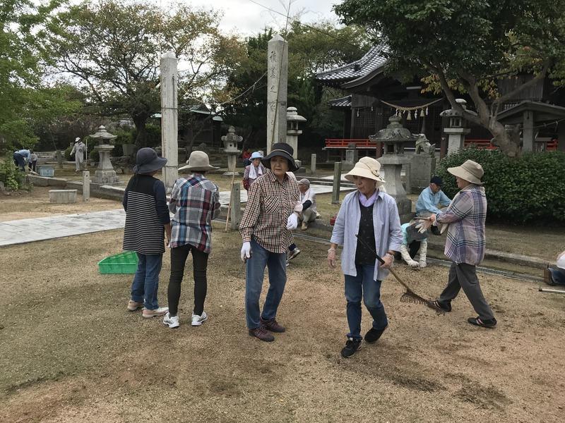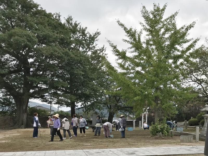 9月29日に大しめ縄作りをやりましたが、10月14日(日)の例大祭が近くなったので境内と社殿の掃除をしました。