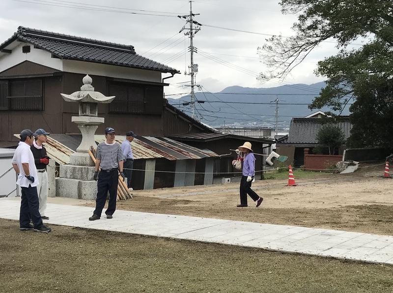 掃除と関係ないですが、境内の左手前の石垣が崩れそうになっていたのが補修されていました。