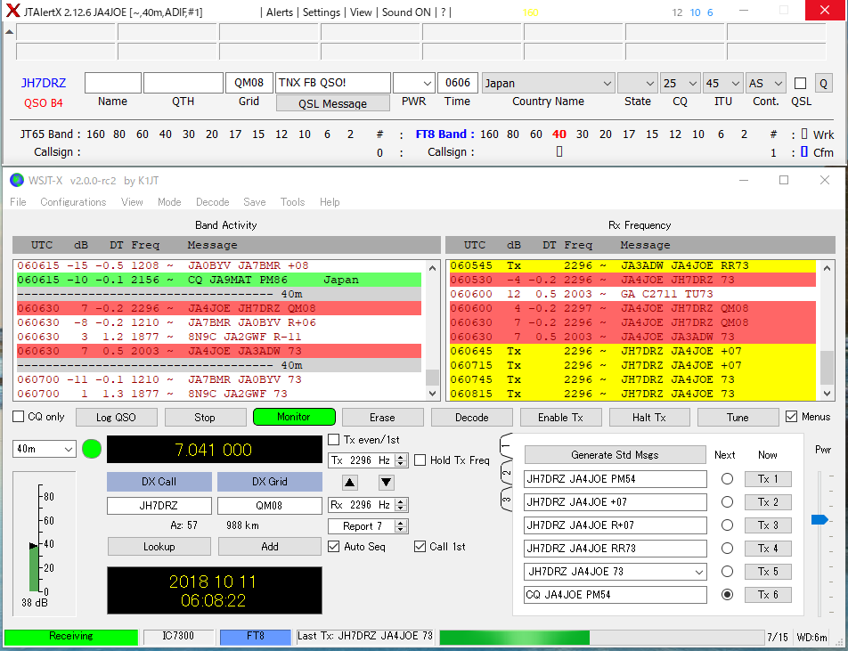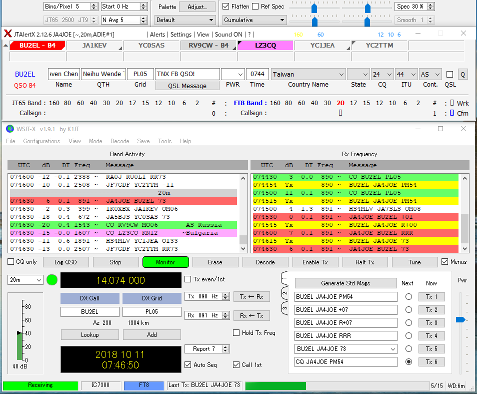 FT8+はFT8と互換性が無いのでv1.9以前のWSJT-X局とQSOできなくなるという噂を聞いていましたが、問題なく交信出来ました。
