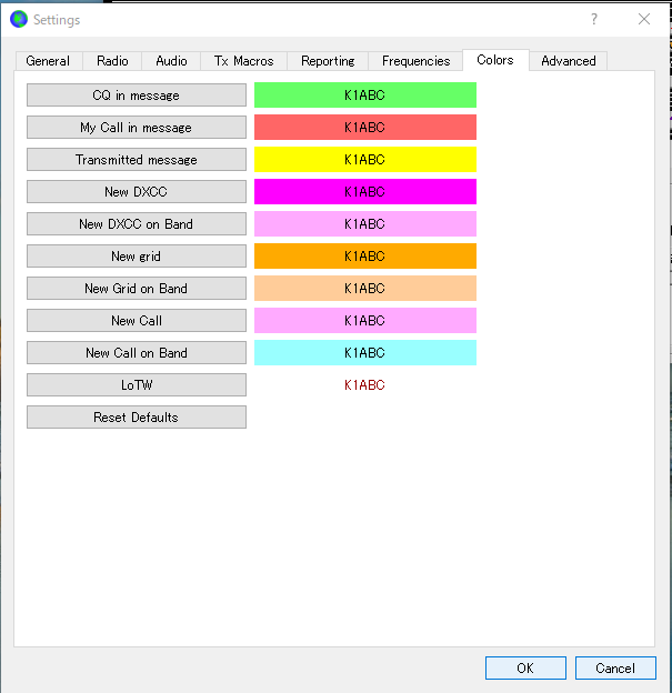 他にColorsの設定で受信の色分け項目が増えています。