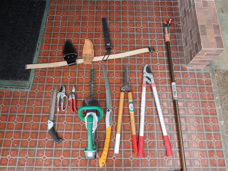 今回使った道具です。他に生垣の剪定にエンジンヘッジトリマーを使いました。