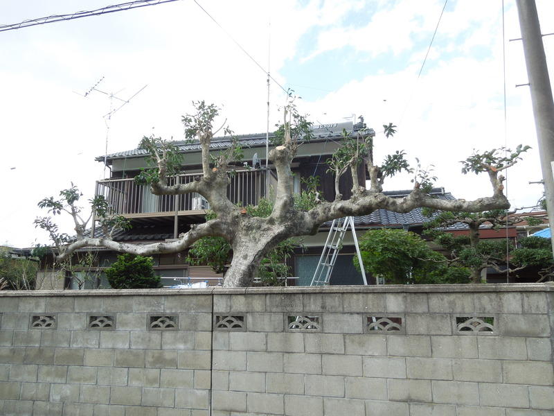 6. 道路側クロガネモチ 昨年は控えめに刈り込みましたが、昨年指導してくれた知り合いからもっと刈り込んでも大丈夫と言われたので、今年は思い切り刈り込みました。特に道路側の枝はほとんど落としました。外からアンテナが良く見えるようになりました。(^^;