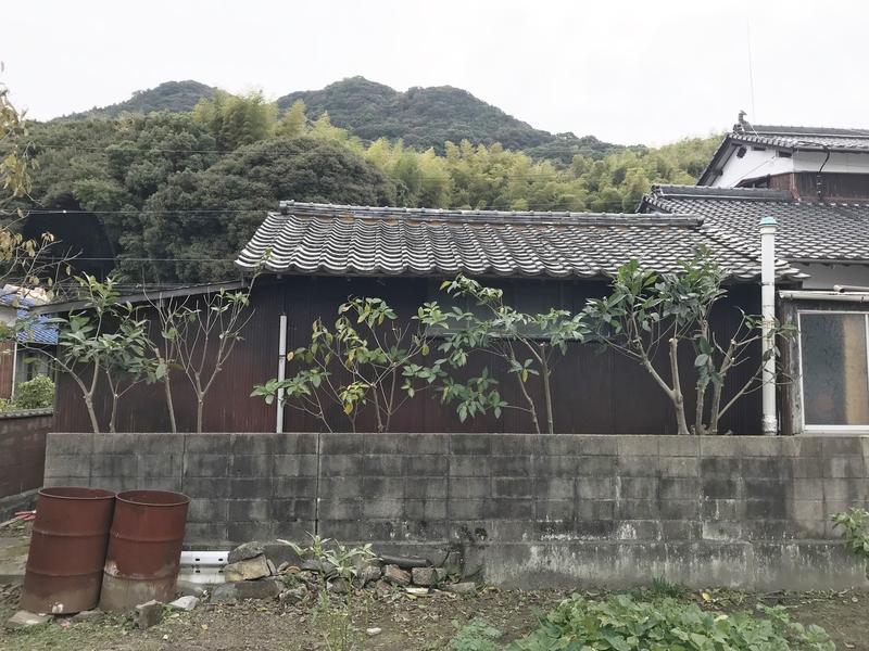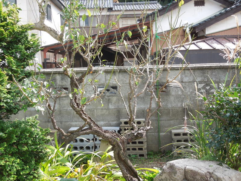 11. 裏のイヌビワ 伸びた枝を落として小さくしました。昨年はここの倉庫裏にスズメバチが巣を作っていて、剪定時に撤去しましたが今年は大丈夫でした。