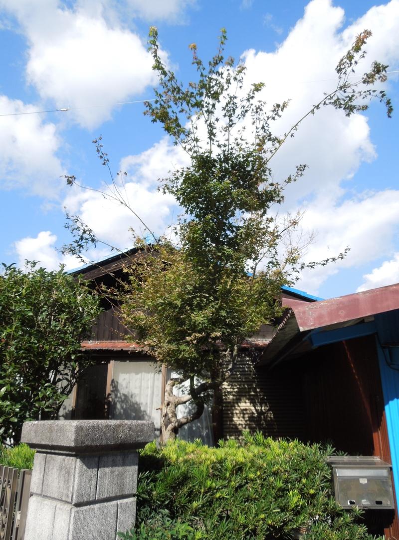9. 庭南西隅の立木(樹木名不明) 昨年かなり枝を短くして小さくしました。今年は延びて飛び出した小枝をバッテリーヘッジトリマーと刈込鋏で刈込んで丸くしただけです。あまり丸くなってませんが。(^^;