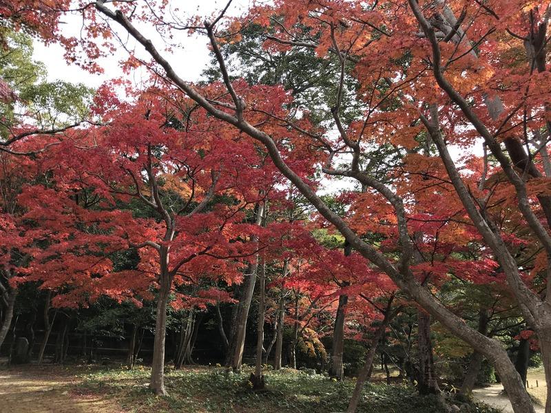 今週末まで見頃が続くと思います。毛利氏庭園の紅葉はお勧めです。