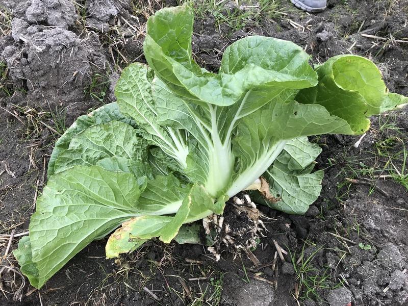 根こぶ病が発生していて上手く育っていないそうです。白菜の根にこぶが出来ています。