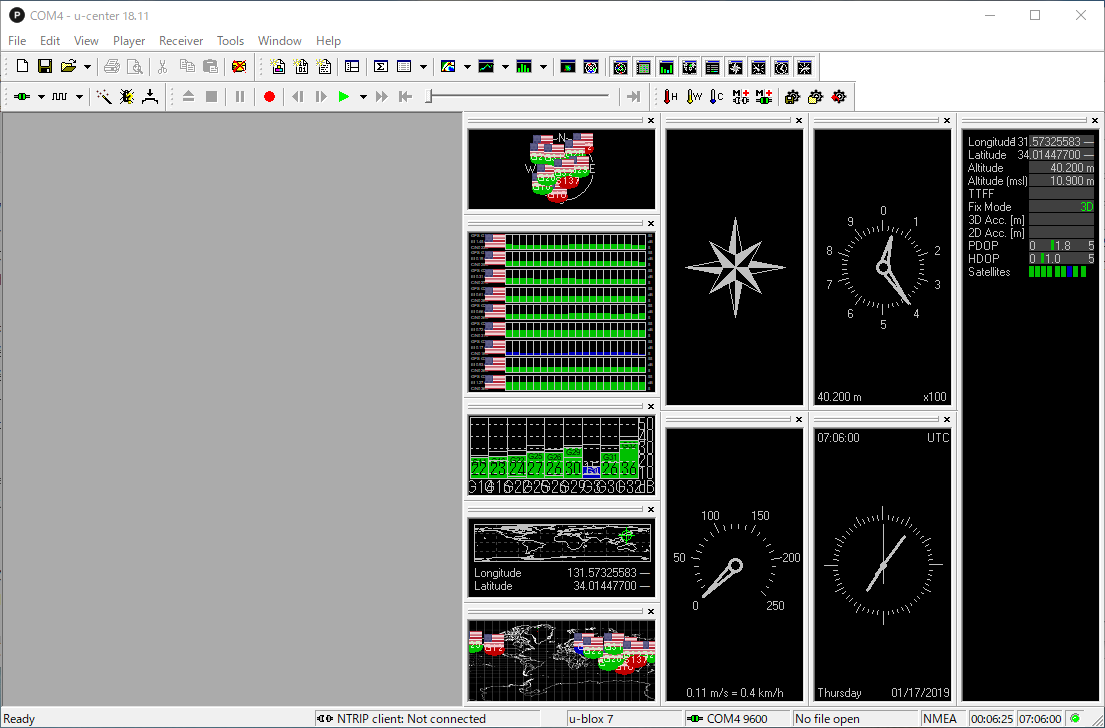 u-centerの役割はここまでで、GPSレシーバーがちゃんと動いているのが確認できたのでお役御免です。プログラムを終了します。