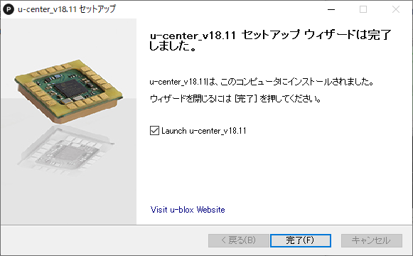 次にダウンロードしたu-centerをインストールします。言語は日本語がサポートされていました。