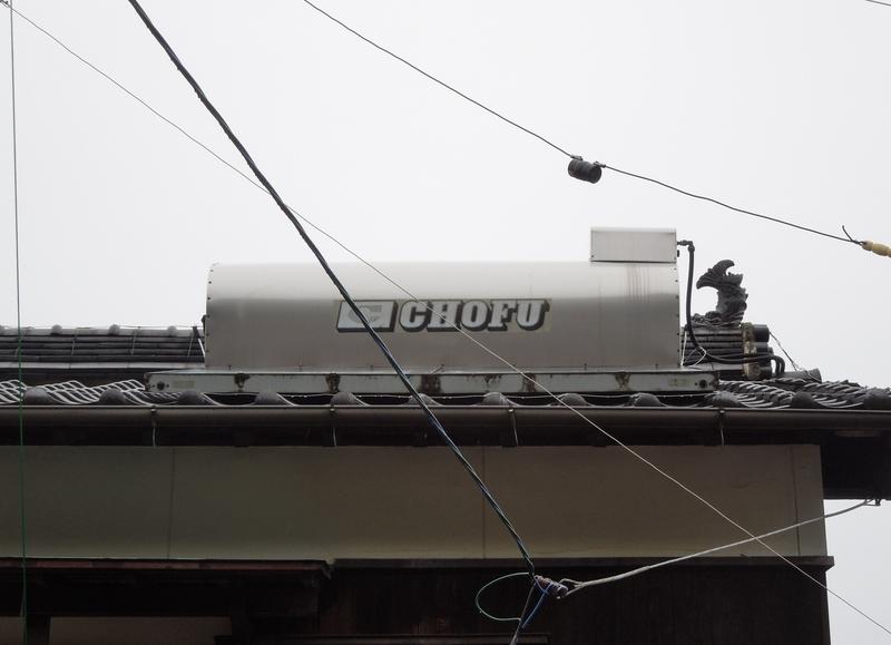 新しい太陽熱温水器は長府製と比べてシスタンクがだいぶ大きくて目立ちます。元のCHOFUです。