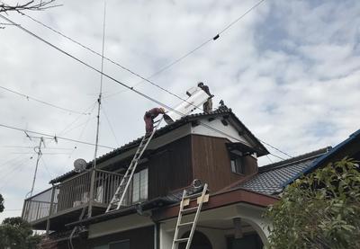 1階屋根までと、1階屋根から2階屋根までの梯子をかけて作業しました。