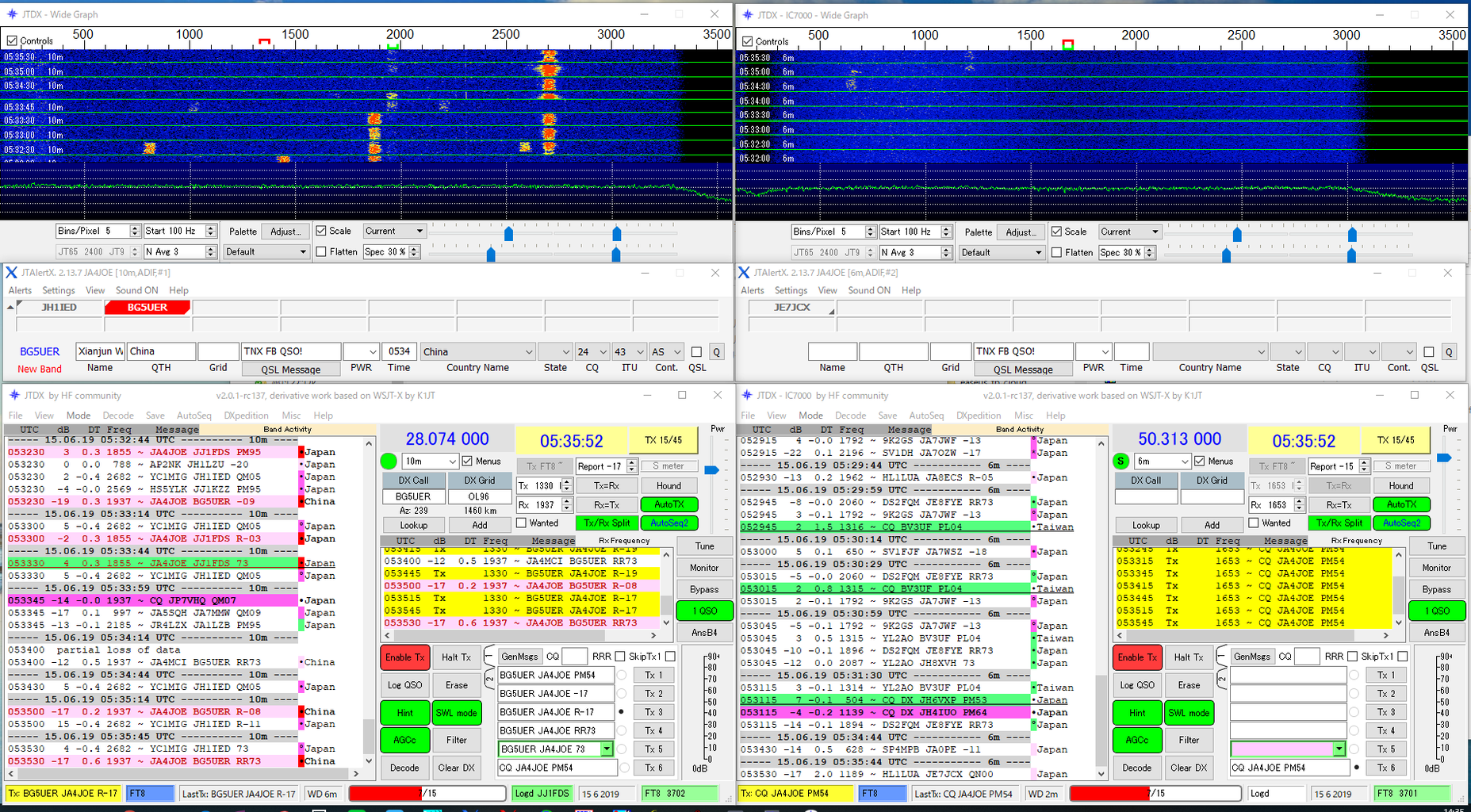 IC-7300MとIC-7000 のJTDX+JTAlert同時起動の画面です。