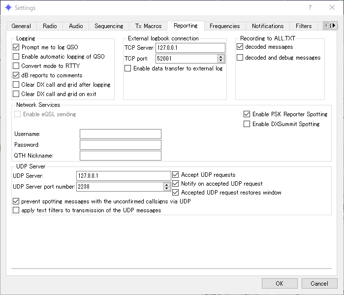 その後、ネット情報でWSJT-X側でUDP Serverのポート番号を変えると複数のJTAlertを起動して使う事が出来ると言う情報を得ました。更にJTDXもWSJT-Xと同じように複数起動が出来るという情報も得ました。ただし、JTDXとWSJT-Xを起動してのJTAlert複数起動は出来ず、同じプログラムが相手で無いと駄目との事です。