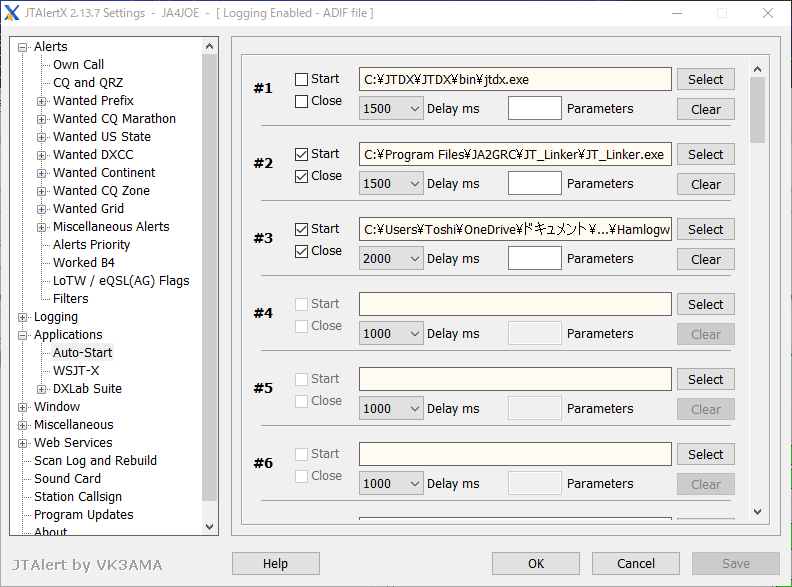 JTAlertからのJTDXの自動起動は停止します。JT_LinkerとHamLogwは2つ目のJTAlert起動時に2重起動になりそうですが問題無いようなので、このままにしました。