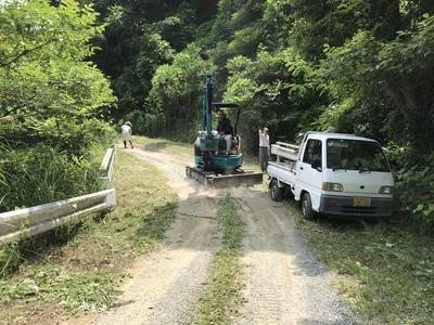 道路補修は2年に一度くらい行っていて、窪んだ所に砂利を入れる程度だったそうですが、今年は重機を出して手伝ってくれる方がいて大掛かりな補修でした。
