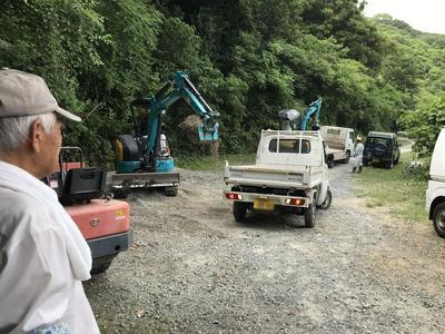 ユンボ2台、軽トラダンプ2台、乗用トップカーが来ていました。