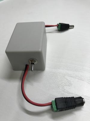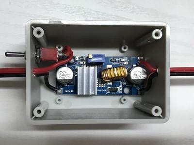 手持の電源モジュールをプラスチックケースに入れて、ついでに電源スイッチも付けました。