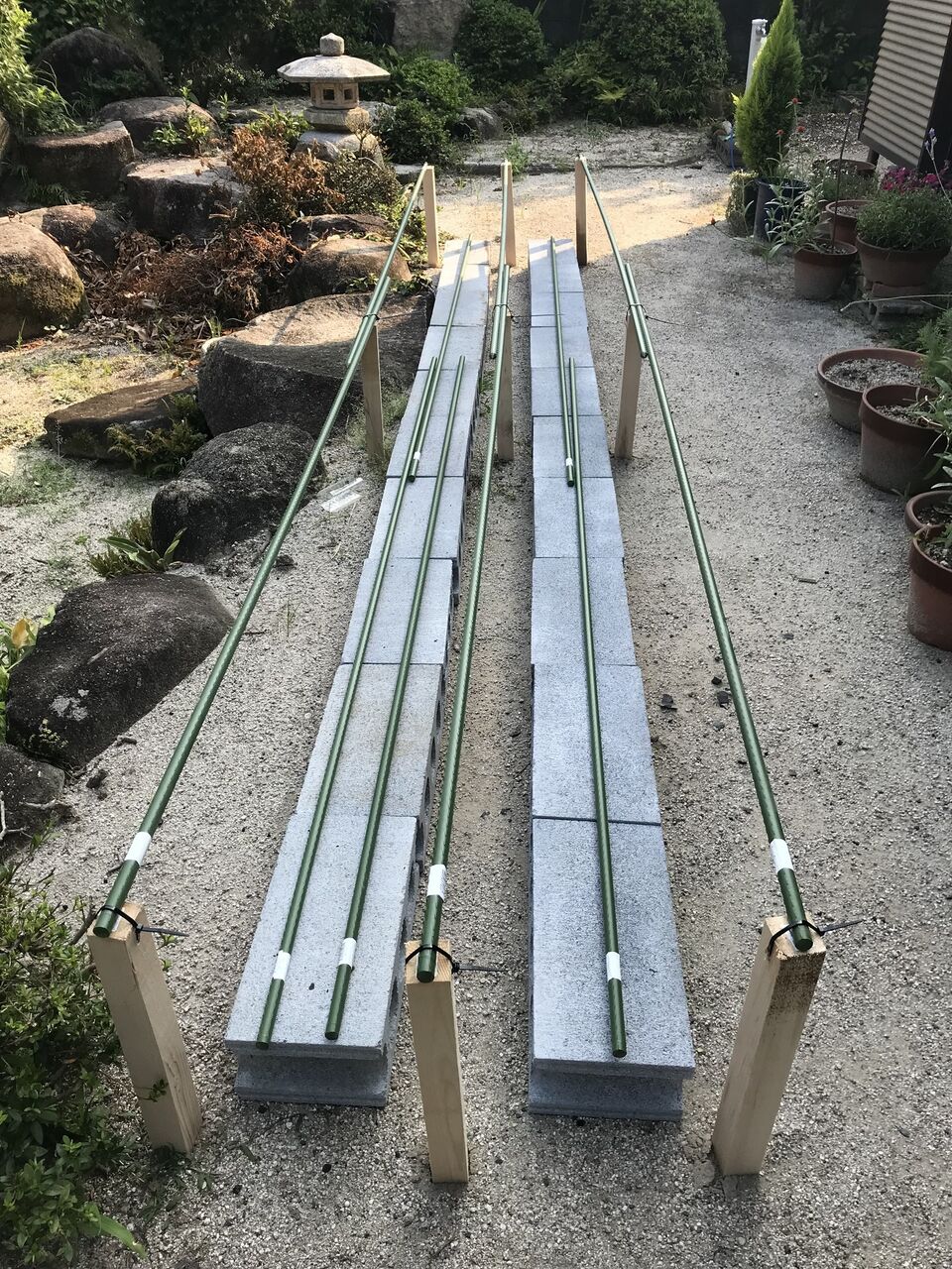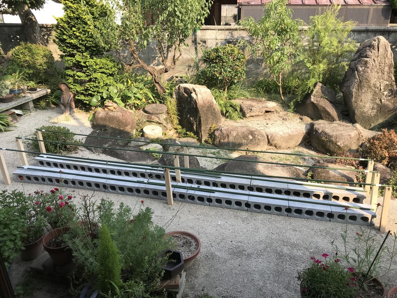 昨年もハクサイ用に苗置き場を作りましたが、昨年使ったブロックと木杭を他に使って足りなかったので、追加で購入しました。(いろいろ買ってると、苗を買ったほうが安いかも。(^^;)
