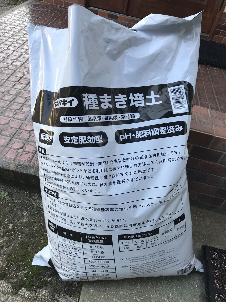 育苗培土はタキイの「種蒔き培土」を使いました。
