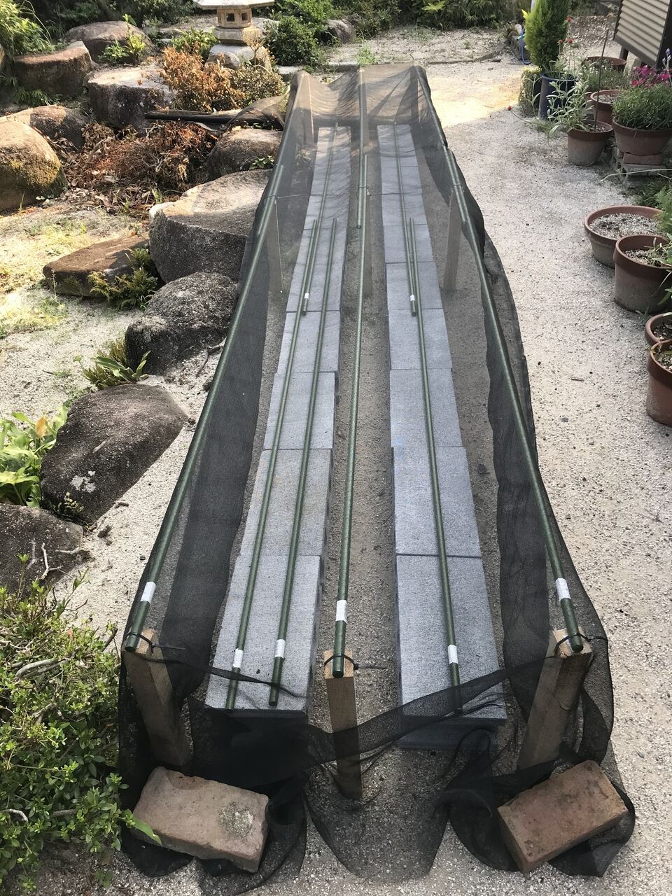 上に新聞紙をかけて土間に置きました。3日後に芽が出たら外に出します。