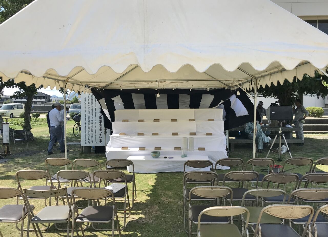 受付けテントは設計どおりで問題ありませんでした。今年も、祭壇以外のテントは骨組みだけでした。