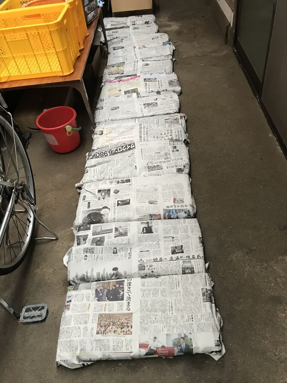 芽が出るまで新聞紙をかけて土間に置いています。