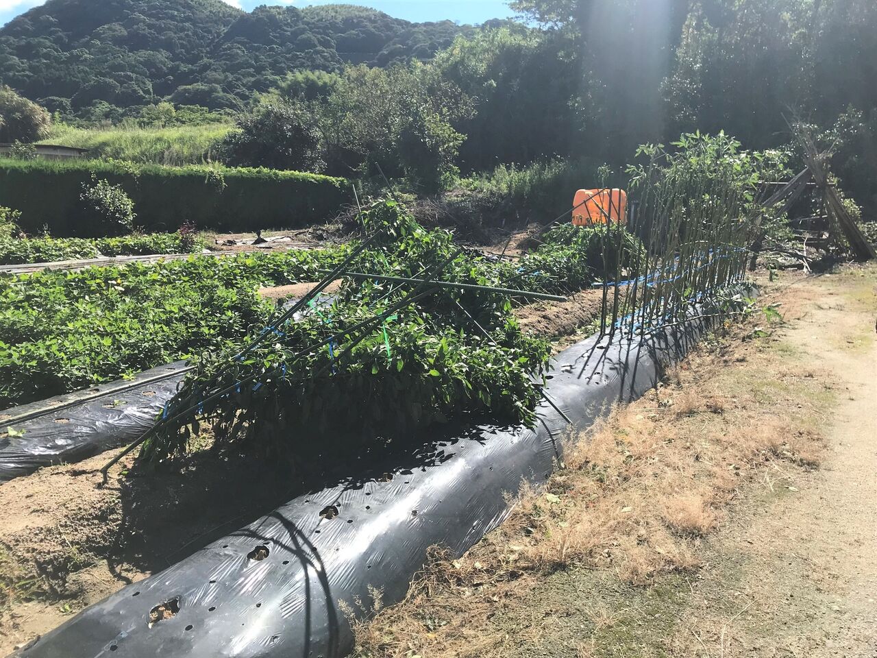 ピーマンは終わりが近かったので良いのですが、折れた支柱の被害が大きいです。