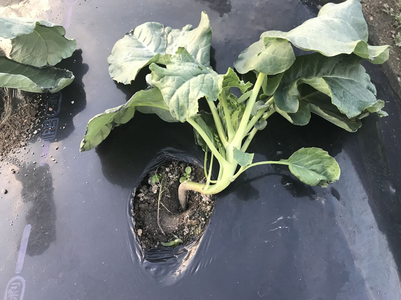 他にブロッコリー、キャベツ苗が倒されていました。枯れなければよいですが。