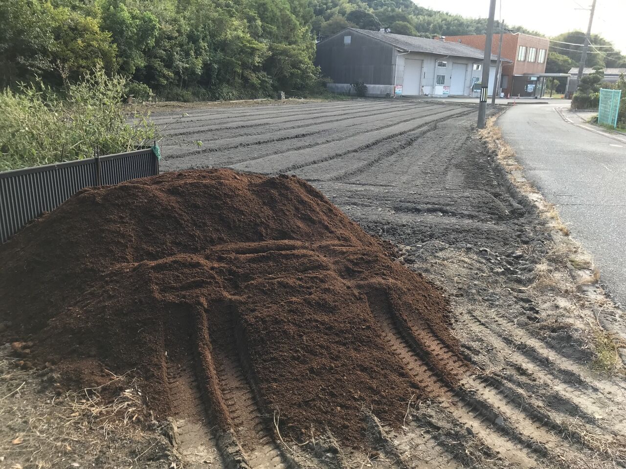 次は牛糞堆肥を入れて鋤くので、今日、市内の防府中村牧場から牛糞堆肥を持ってきてもらいました。
