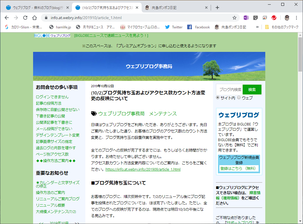確認するとウェブリブログのブログ気持ち玉が復活していました。