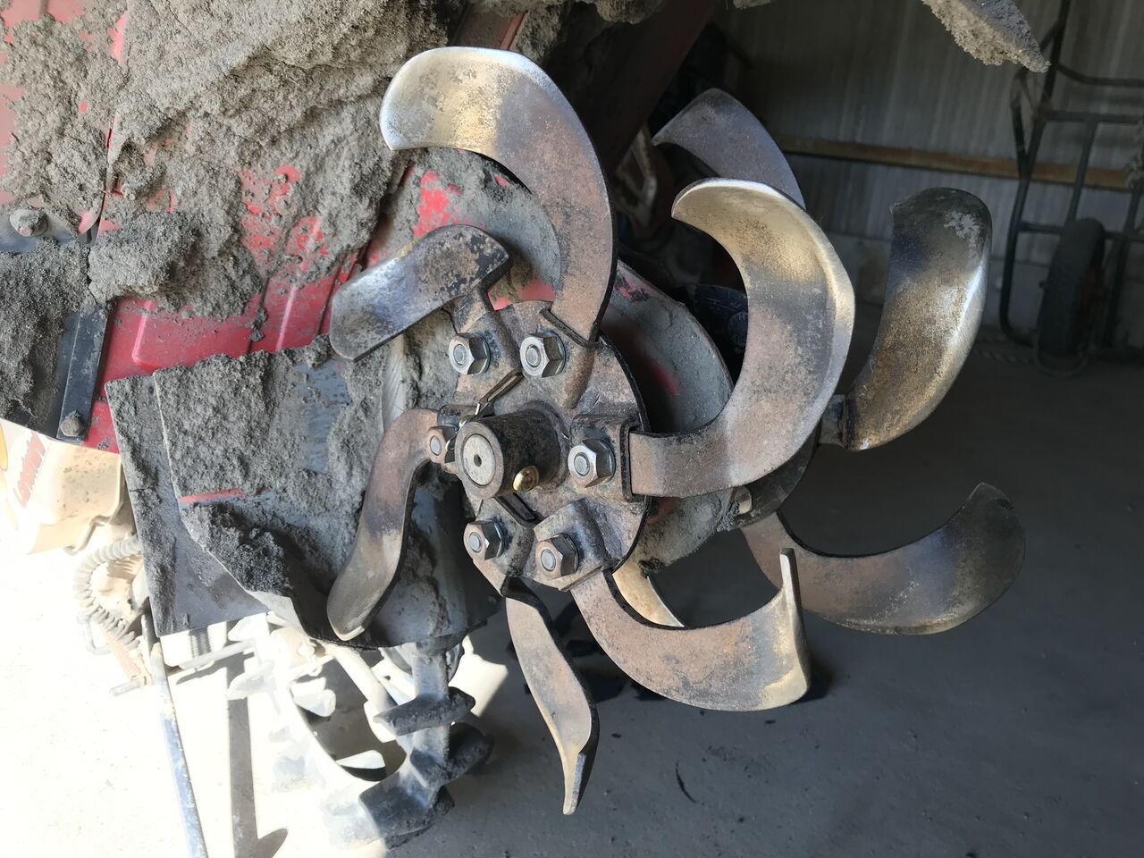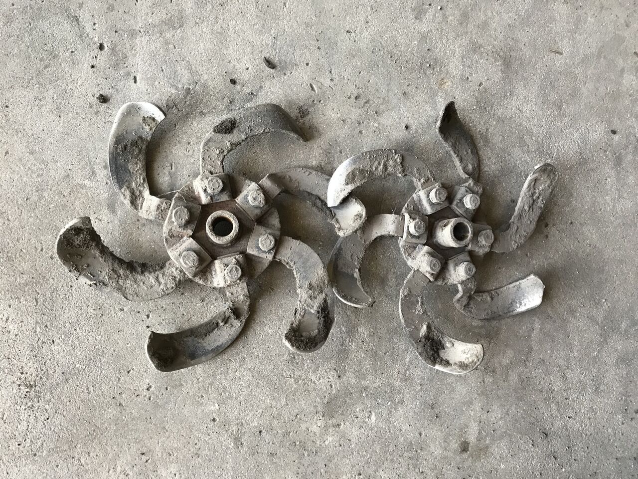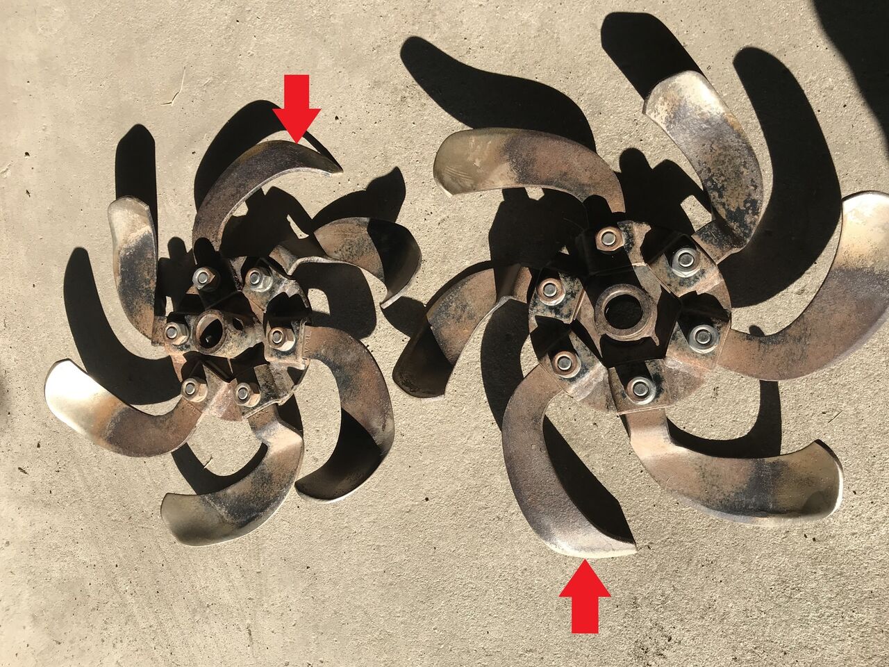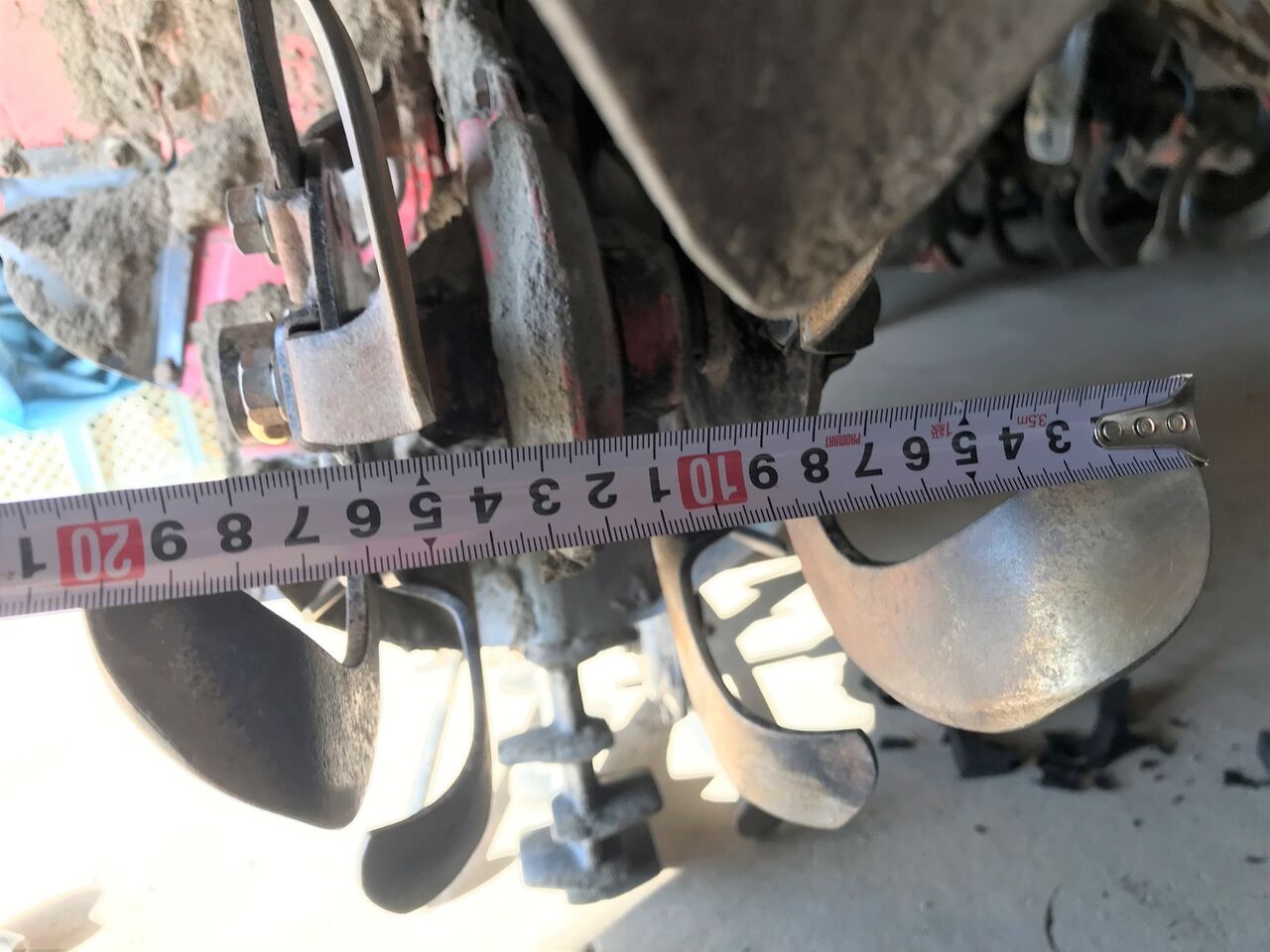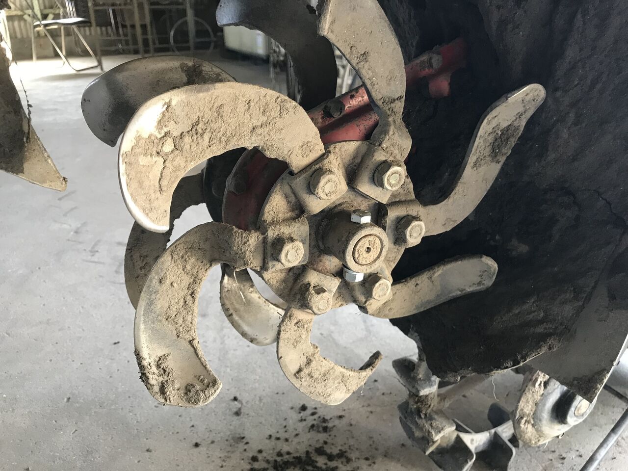 取付前に、ロータリを洗って点検すると爪が一本反対向きについていました。