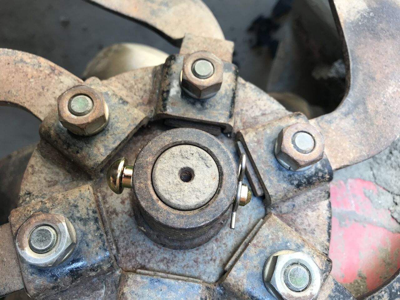 調べるとロータリはボルトではなくロットピン(リベットピン)で止めるようですが、なぜかボルトで止めてあったようです。