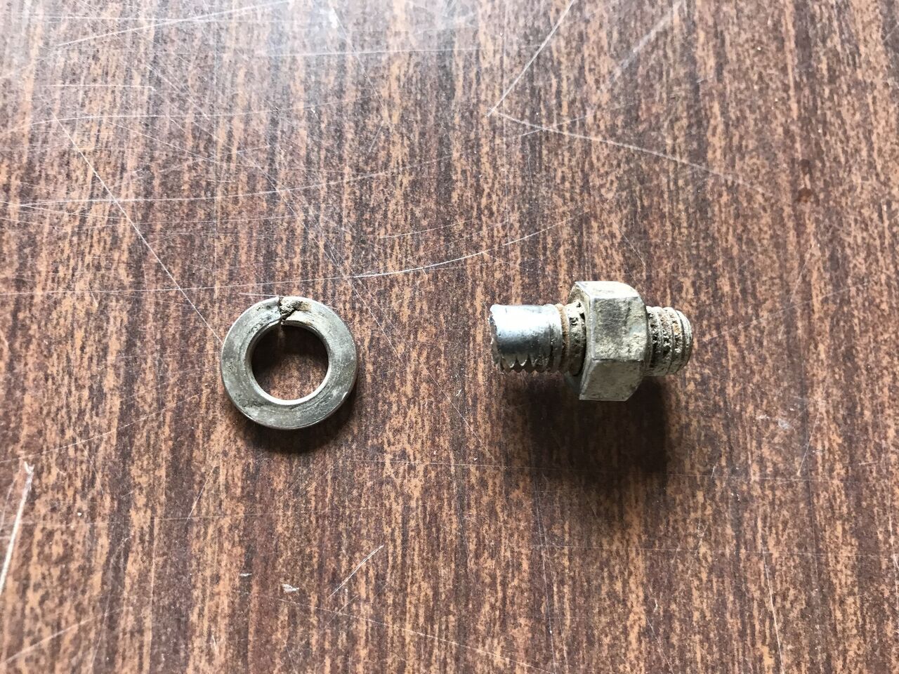 ロータリを拾って、落ちた部品を探しましたが、折れたボルトとスプリングワッシャ1個しか見つかりませんでした。