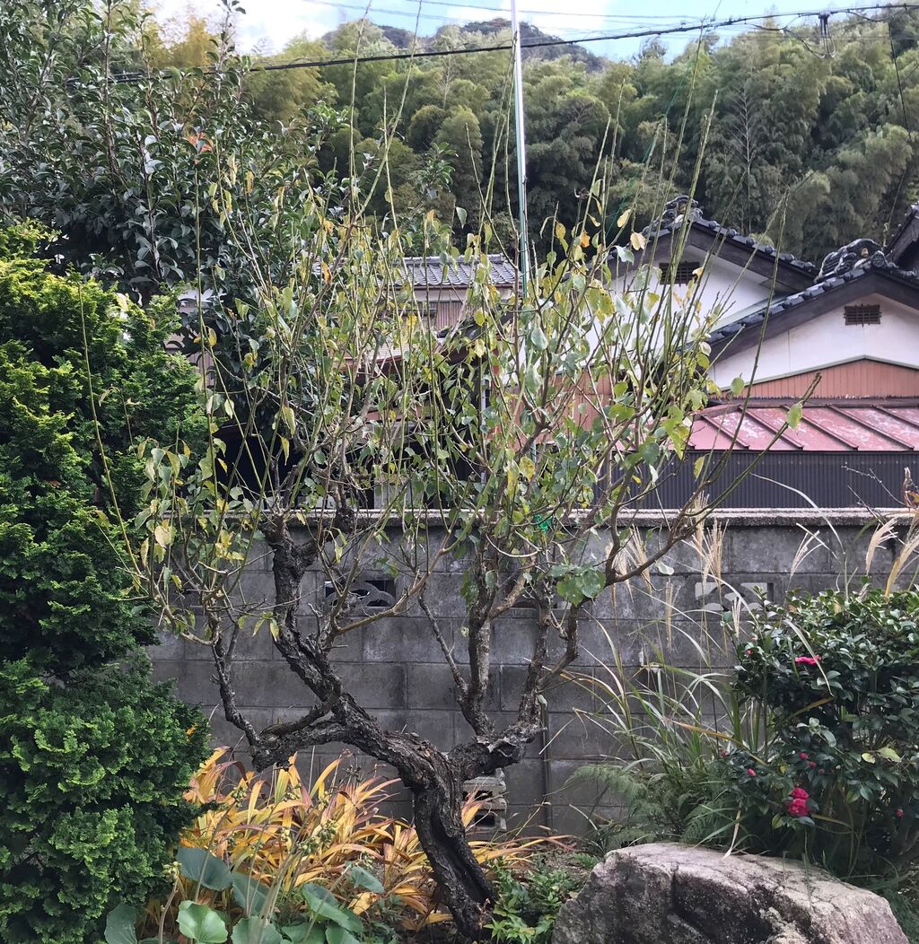 枝が倉庫に当たって風の強い日に擦れるので、思い切って枝を落としました。