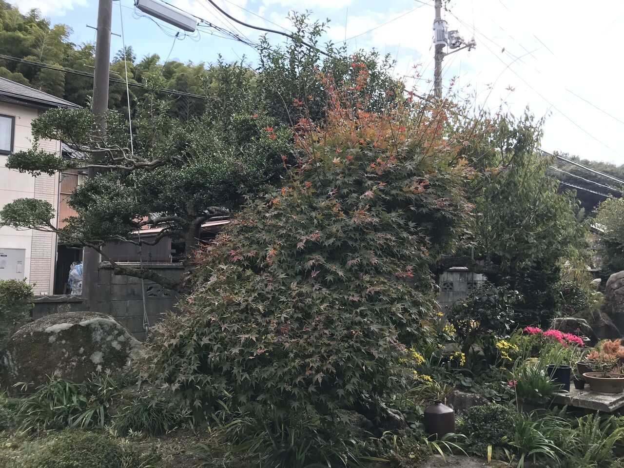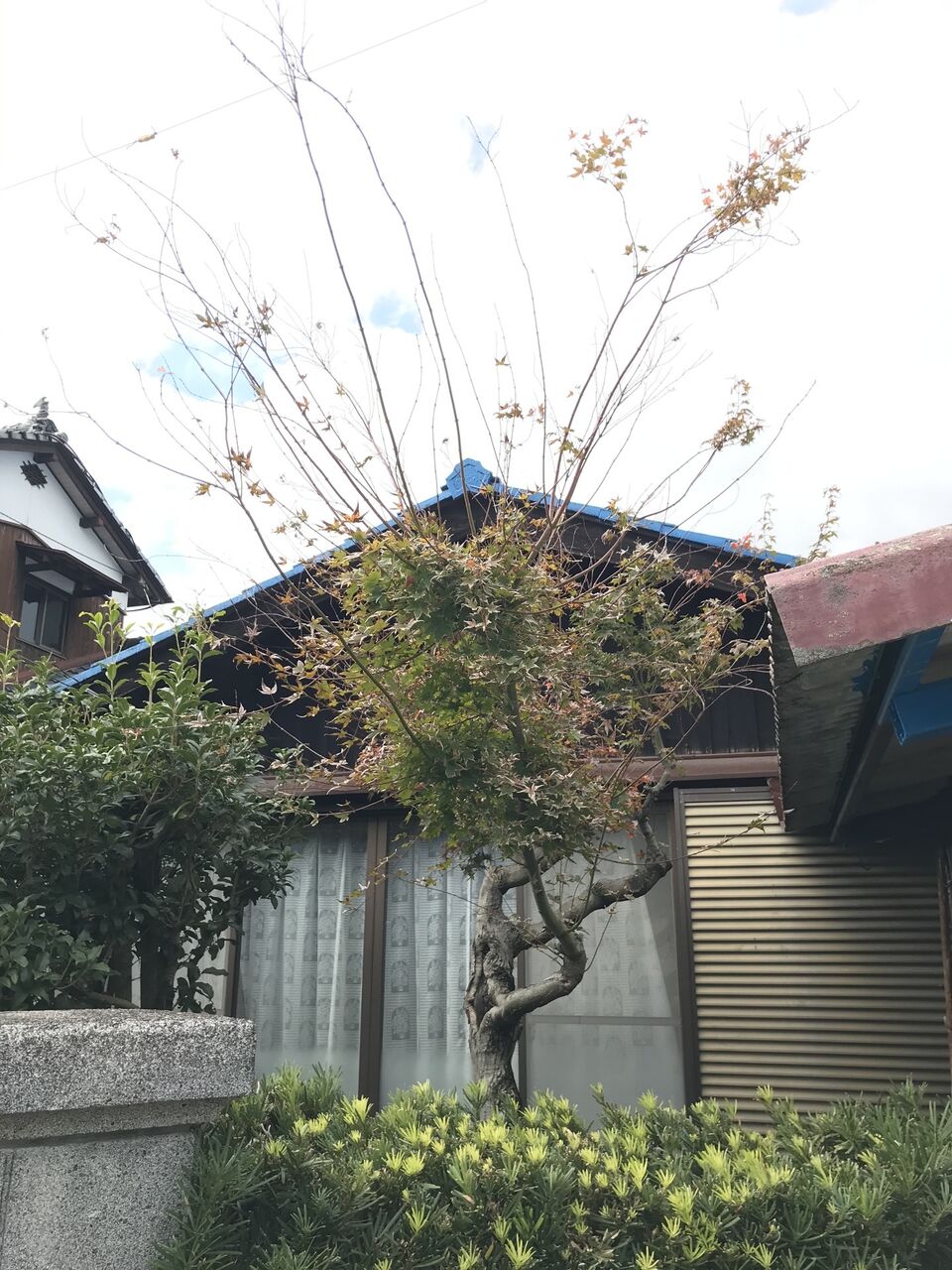 葉を刈込ばさみで丸くしましたが、昨年からあまり葉が増えていません。昨年、プロの方が「この木は切ってもみじを大きくした方が良い」と言っていたので、そのうち切ることになるかも知れません。