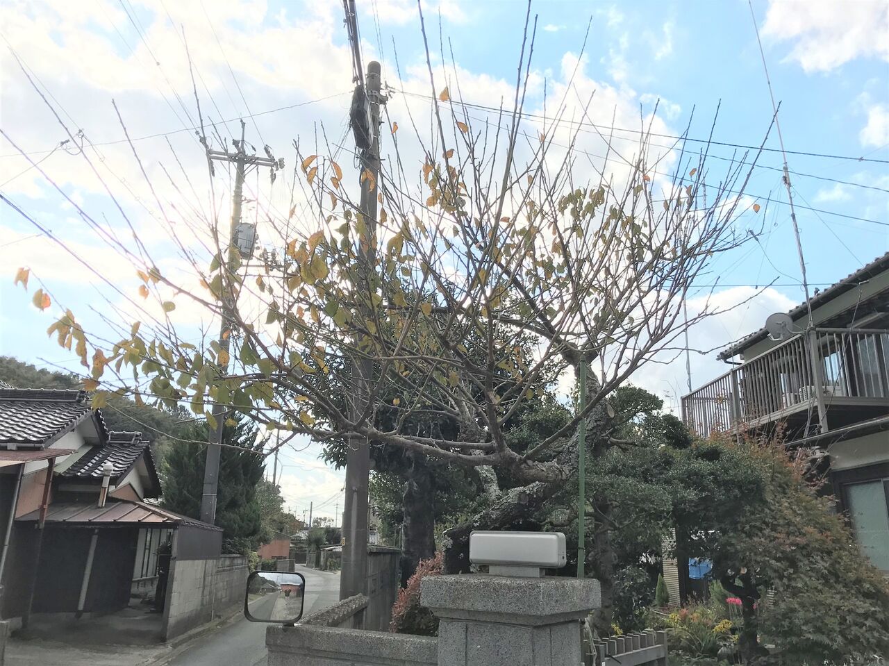 この木は私が子供の時には既に大きな木で写真右側の枝の位置が我が家の入り口で、この枝の下を通って庭に入っていました。入った正面が昔の家の玄関になっていました。